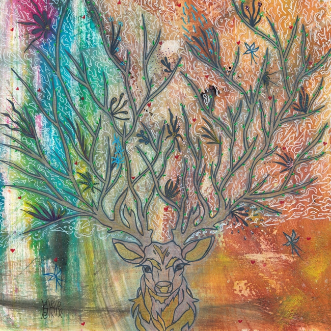 Le cerf symbole, entre autres, de sagesse, de noblesse, de bienveillance, d'équilibre, de créativité et de régénération.