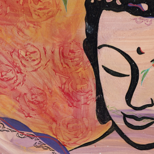 Cette peinture est une rencontre des énergies de Bouddha et de la Rose. Deux énergies puissantes qui nous offrent un espace d'amour, de plénitude, d'apaisement, d'ouverture du cœur, de protection, et bien plus encore.
