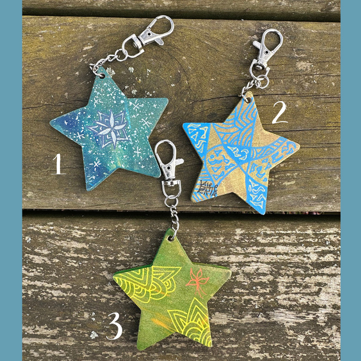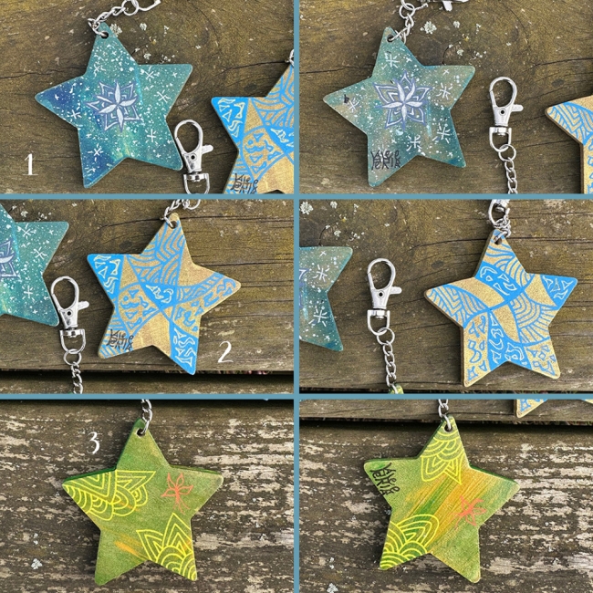 Porte-clés en bois décoré à la main :