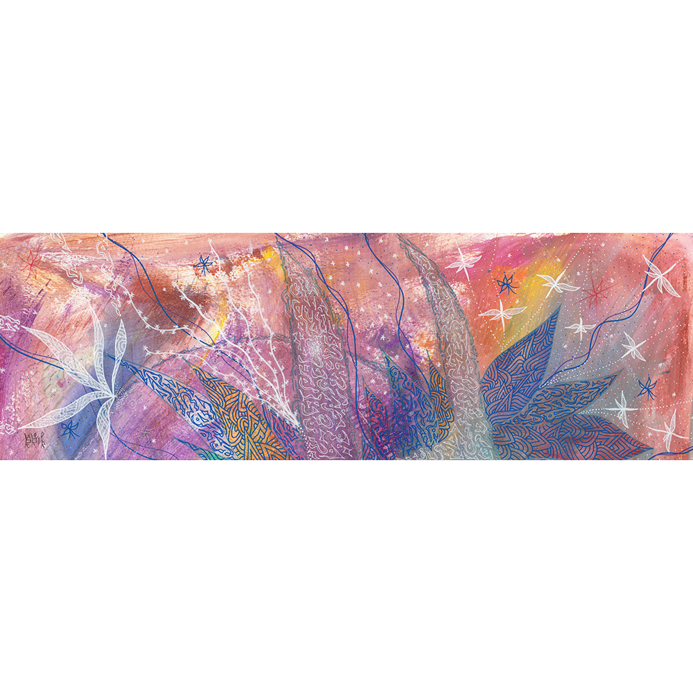 La série D'ici et d'ailleurs regroupe des peintures intuitives et vibratoires, inspirées par les énergie de notre Terre-Mère, des êtres qui la peuplent, et des énergies d'autres mondes.
